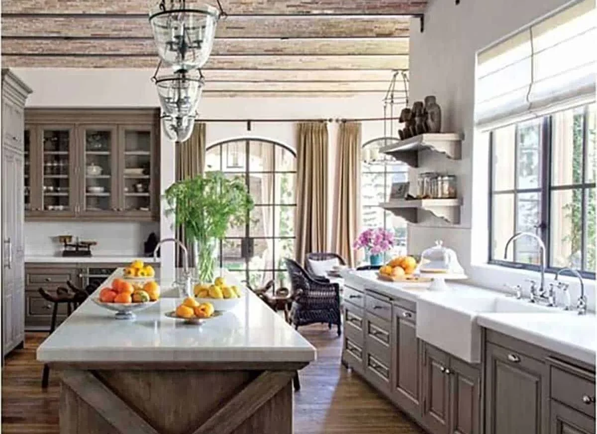 A call to evocation, a trip to those country kitchens.  Furniture, walls, ceilings and floors with aged finishes, decorated with handmade fabrics in colors that allude to the earth. An option for lovers of the old school.